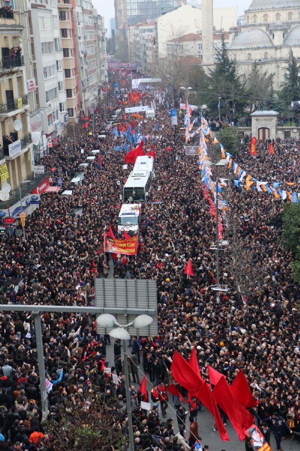 Okmeydanı Cemevi'nden yola çıkarılan Berkin Elvan'ın cenazesi Şişli Meydanı'na getirildi. Kalabalık arasında yavaş yavaş ilerleyen cenaze aracı, Feriköy Mezarlığı'na götürülüyor.