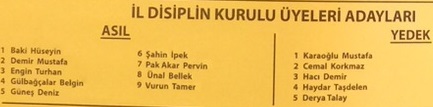 Disiplin Kurulu asil ve yedek üyeleri