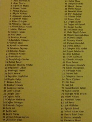 Cemal Canpolat'ın listesinde yer alan Büyük Kurultay Delegeleri ise şöyle;