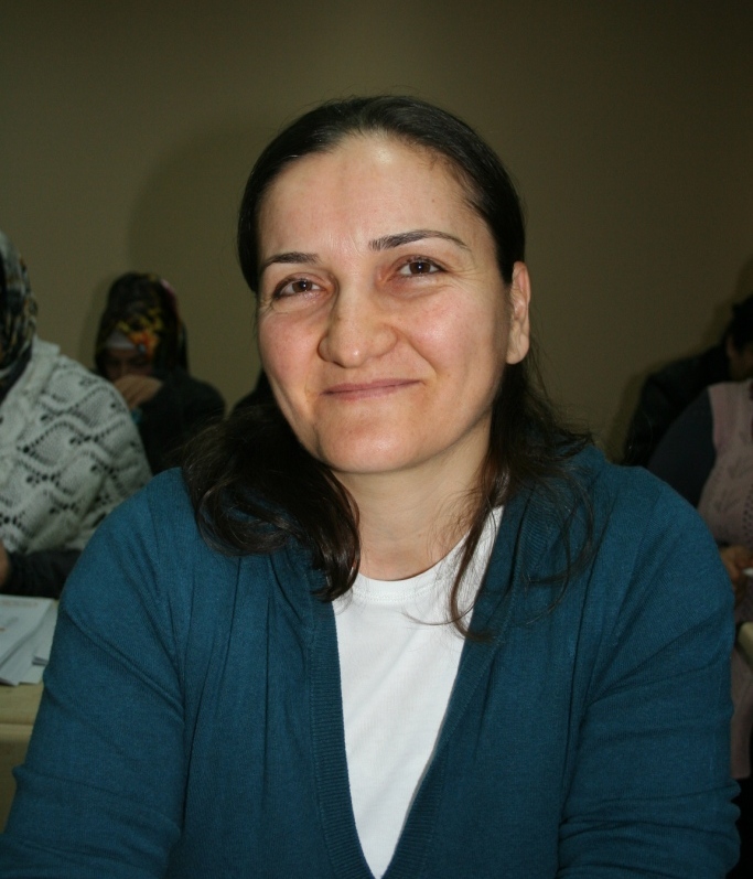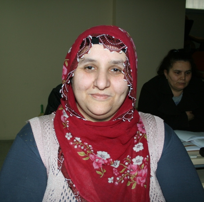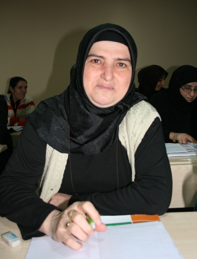 13 yaşında evlendim. Babam okula göndermek istedi ama bizim köyde okul yoktu. Çok pişmanlık duyuyorum. Üç çocuğum var. İki kızım okula gidiyor. Çocuklarım derslerime yardımcı oluyorlar. Okuryazar olduğunuz için bir yere gittiğiniz zaman adresinizi bulabiliyorsunuz. Para öderken zorluk çekmiyorsunuz.
