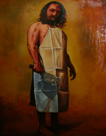 Elindeki satır ile ne yapacağı belli olmayan adamın resmedildiği tablo oldukça ilgi çekti.