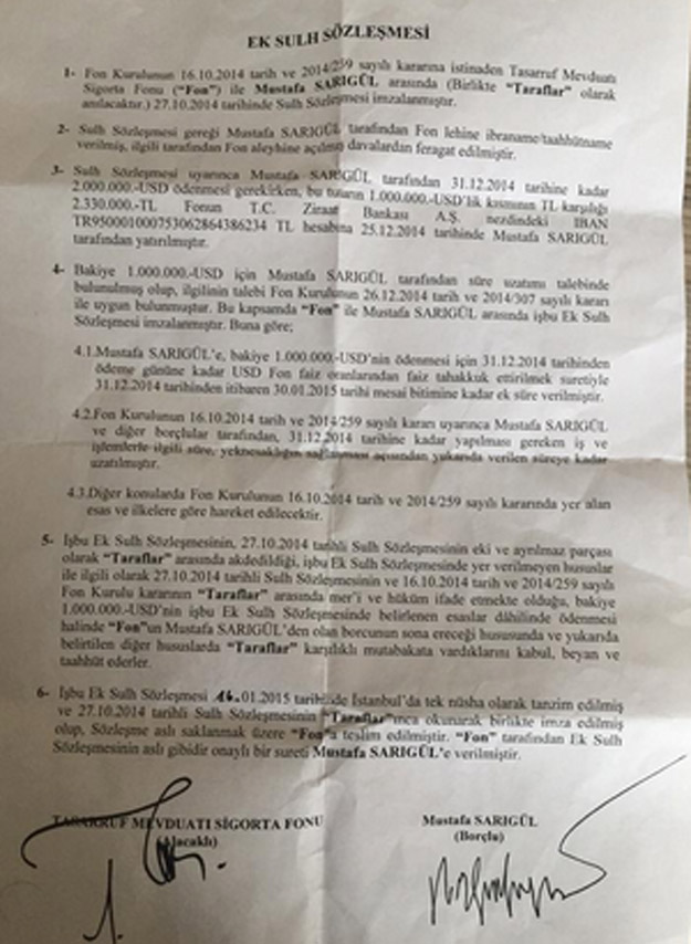 Şişli Belediyesi eski Belediye Başkanı Mustafa Sarıgül, 1998 yılında Bank Ekspres'den alınan bir krediden kaynaklanan 2 milyon dolarlık (5 milyon TL) borcunu TMSF'ye ödedi. Sarıgül'ün, TMSF ile yaptığı "Sulh Sözleşmesi" metni ise sosyal medyada paylaşıldı.