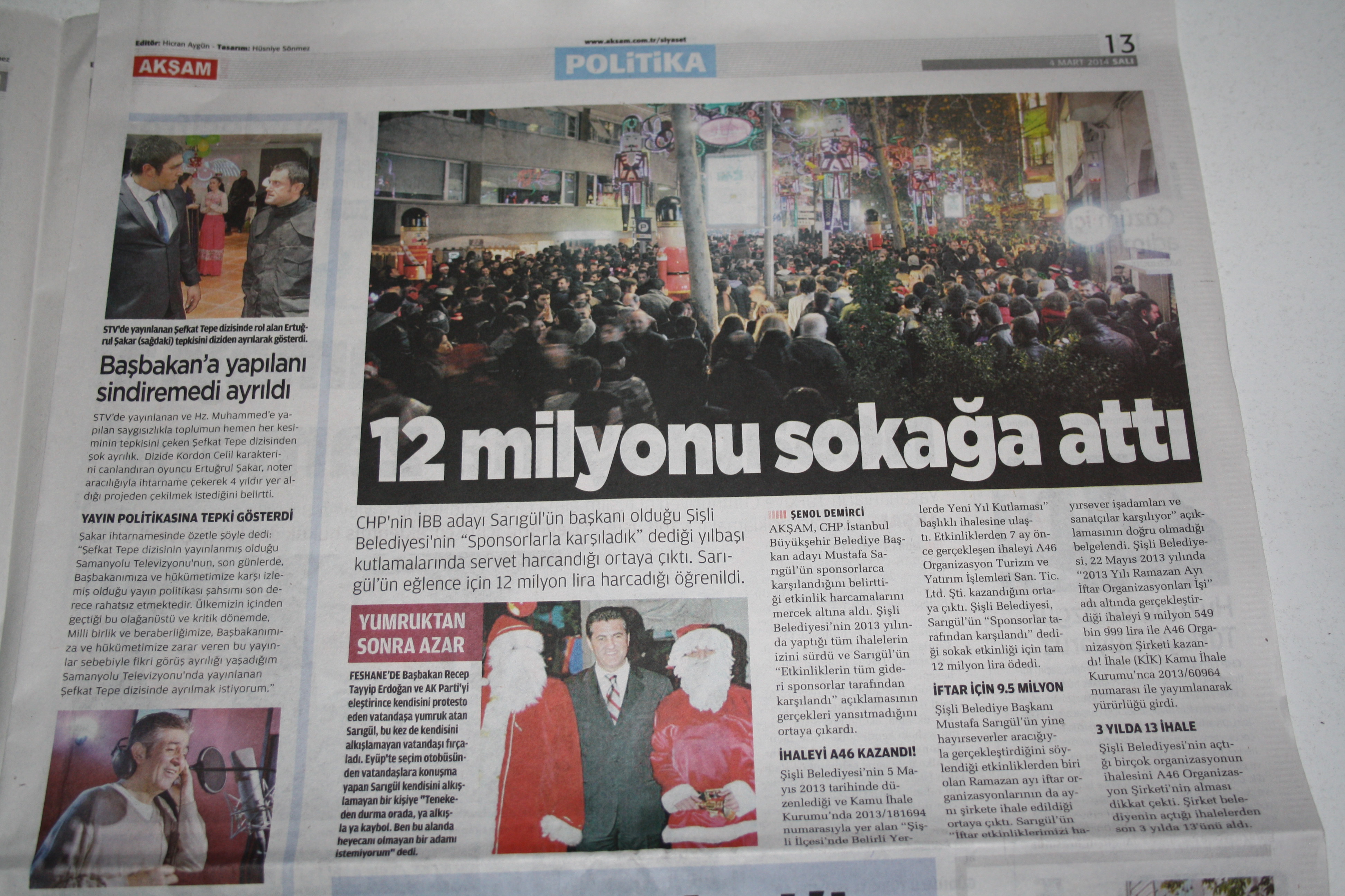 Şişli Gazetesi olarak; Şişli Belediye Başkanı Mustafa Sarıgül’ün Şişli’de kurduğu rant organizasyonunun perde arkasını ve nasıl ülkenin gündemini sarsacak boyutlara ulaştığını açıklıyoruz demiştik. Şişli Gazetesi olarak verdiğimiz haberi, Akşam Gazetesi b