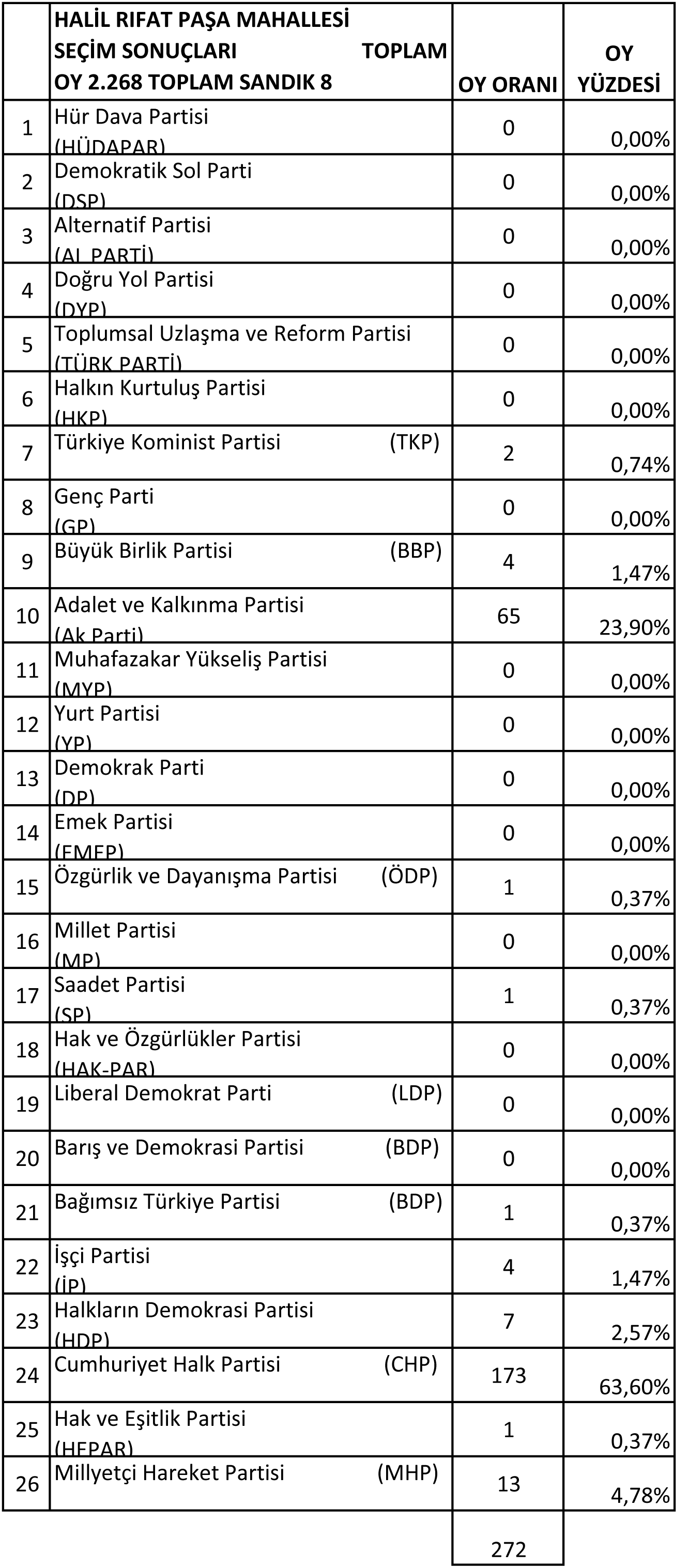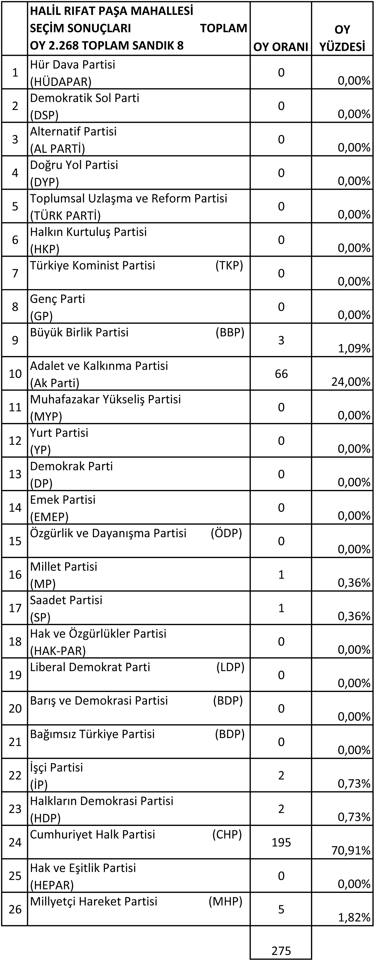 HALİL RIFAT PAŞA BAŞKAN 2161 NOLU SANDIK SEÇİM SONUÇLARI