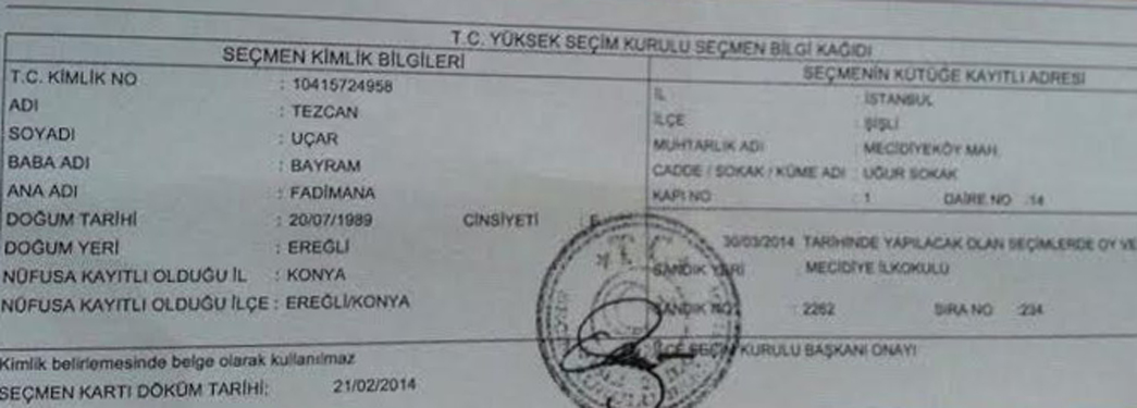 Çevre illerden Şişli'ye getirilerek buralarda oy kullanmaları planlanan bin kadar sahte seçmen için gönderilen YSK Seçmen Bilgi Kağıdı polisin eline geçti. Emniyet sahte seçmenleri sandık başında yakalayacak.