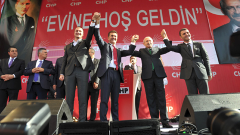 CHP Genel Başkanı ve Mustafa Sarıgül alana el ele geldiler.