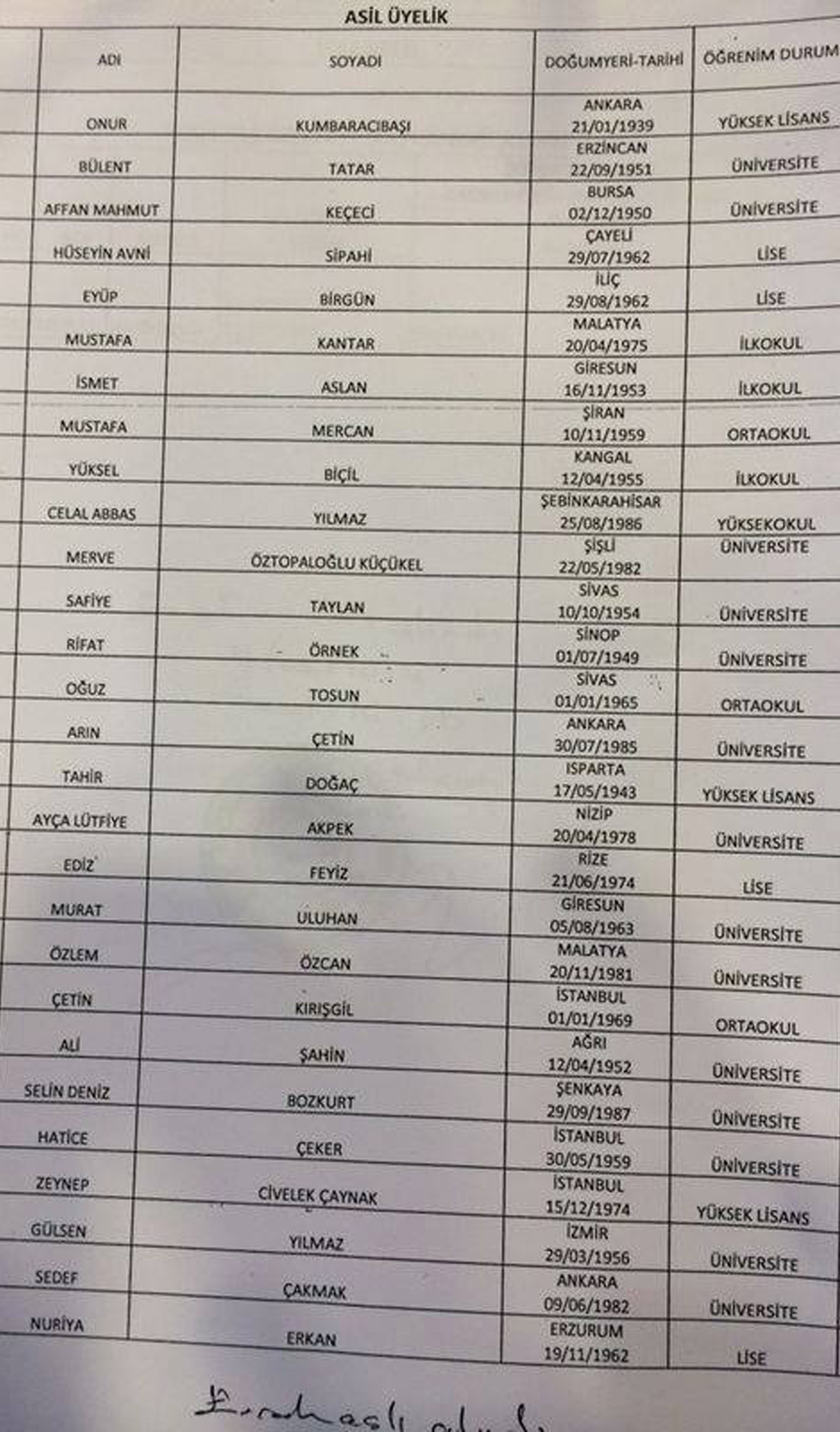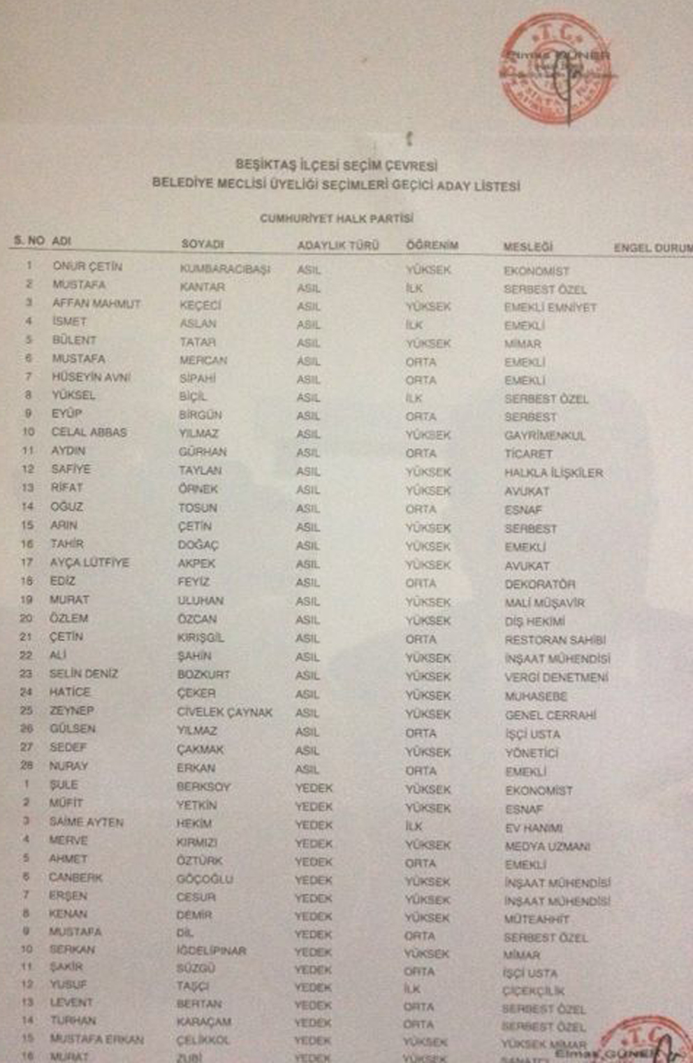 CHP GENEL MERKEZİN BEŞİKTAŞ LİSTESİ
